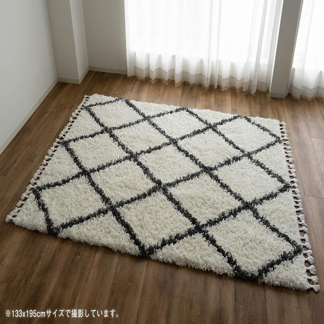 幾何学模様のコットンラグ【ストーンウォッシュ】 |