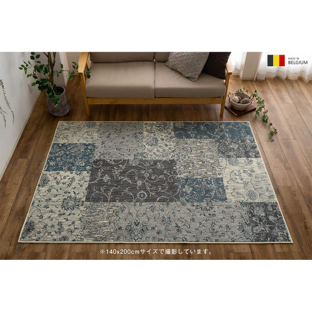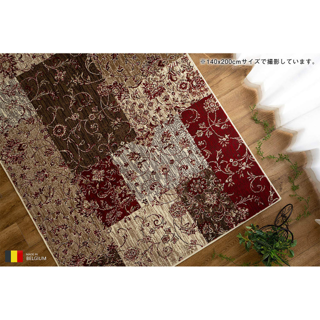パッチワーク風デザインを、落ち着いた色合いのビンテージ調で表現したラグマットです。