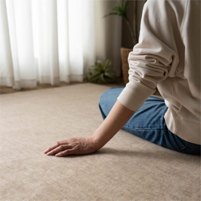 カットパイルでペットにも優しい、防ダニ・抗菌加工付きの日本製カーペット。