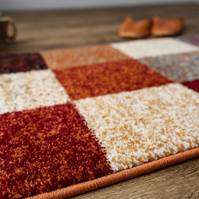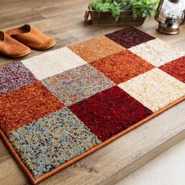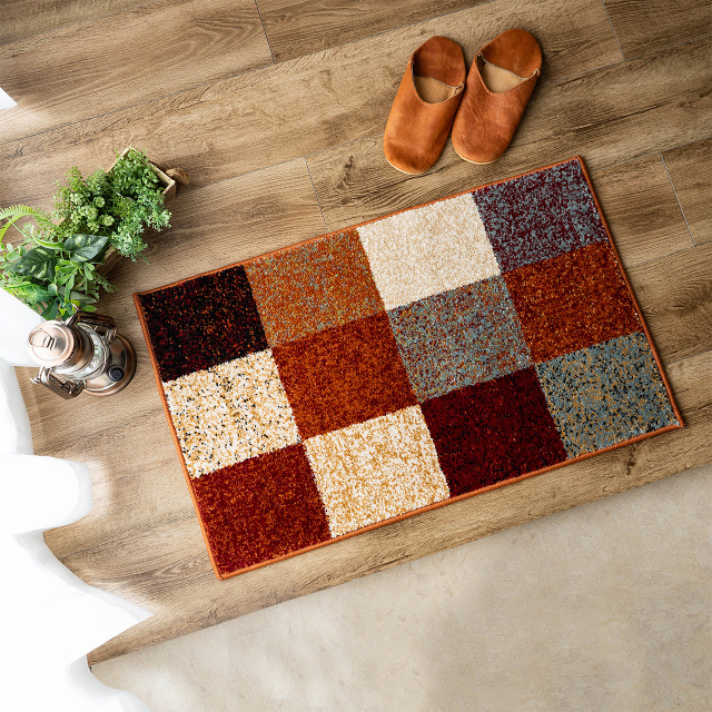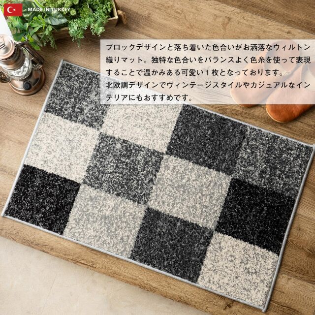 ブロックデザインとこだわり感じる鮮やかな色使いがおしゃれな、トルコ製ウィルトン織りマット。