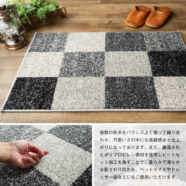 玄関をおしゃれに彩る マルチカラーマット! 北欧モダンを感じるチェック柄 " おしゃれな色使いの、本場トルコのウィルトン織りマットです。" ![]() " 人気の商品が、リニューアル致しました! " 色合いに明るさ加え、デザインもスタイリッシュな柄に変更し、 毎日の暮らしをさりげなく彩る、軽やかな印象に仕上げました。 ナチュラルにもモダンにも合わせやすく、 生まれ変わったフロスティブロックで、 あなたの生活空間を一層魅力的に彩ります。 カラー: マルチ![]() " 日常使いに適した ウィルトン織り " ウィルトン織りカーペットの基準の1つであるノット数は、 160,000ノットの商品です。 16万ノットは、カーペット業界の基準では、日常使いに適した 普及品となります。ただ、その中でも踏み心地はしっかりとし、 ご満足いただけるマットとなっております。 ウィルトン織りの特徴である繊維の表面に熱処理加工を施す ヒートセット加工により、形態や寸法安定性を保つようにする効果もあり、 表面が柔らかく、滑らかで、遊び毛が出にくい 仕上がりになっているのも特徴です。 その為、日常使いでとても扱いやすいマットとなっております。 ![]() " 心地良さにもこだわりました " 素材には 『 ポリプロピレン 』 を使用 (ポリプロピレン 100%) パイル糸を強くねじったツイストパイルを使用しています。 ツイストパイルを使用することで、質量を高めるだけでなく、遊び毛を抑え より深みのある色合いを演出することができます。 その糸をハードツイスト加工(強念)することで、 しっかりとした踏み応えの感じられる心地よさに仕上がっています。 ヨーロッパの伝統ある"ウィルトン織り"と言われるだけあり、 長年の知識と経験を活かし、高級感あるマットに仕上がっています。 ![]() ![]() " 一年を通して、お使いいただけます " マットの全厚は、約14〜15mmです。 さらに冬場には床暖房にもお使いいただけ、 玄関以外のベッドサイドなどの アクセントマットとしてもおすすめ! 季節を問わず、1年を通してお使いいただけます。 ![]() ![]() カラー: チャコール![]() シックな色使いが、高級感を引き立たせる"チャコール" 濃いウッド調の落ち着いた色使いの、玄関やインテリアにぴったりです。 ![]() ![]() ![]() お手入れ方法![]() 必ずお読みください![]() ![]() 選べる2色展開インテリアに合わせてお選びください。 ![]() 歴史ある『ウィルトン織り・マット』の良さを 感じていただけましたでしょうか? 本場トルコで作られた"彩色豊かで柔らかな肌触り"と、 "さまざまなパターンを組み合わせた"デザインマットを是非お楽しみ下さい。