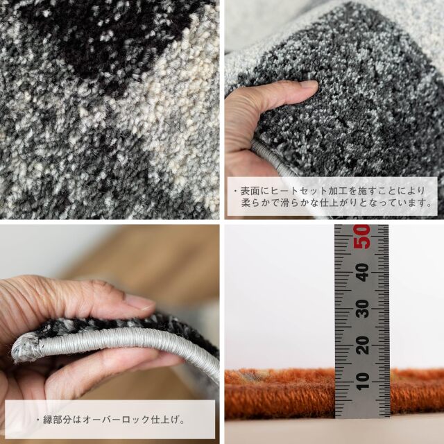 | 組成 | ポリプロピレン100% / <毛足> ハードツイストパイル・ヒートセット加工 / ウィルトン織り・1㎡辺り160,000ノット |