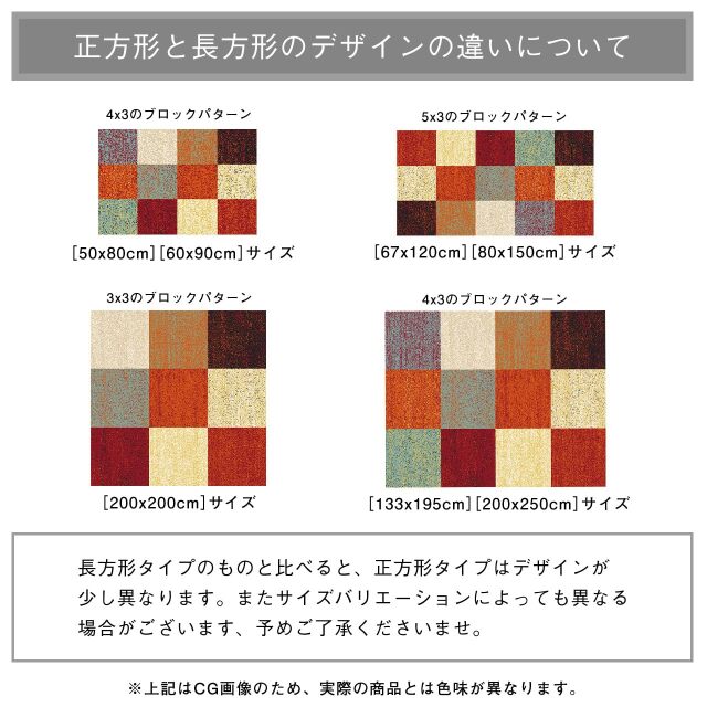 | お読みください | 【 商品について 】 ・[丸巻き]または[折りたたみ]の状態でお届けいたします。開梱時に巻き癖(折り癖)や毛並みにムラなどがございますが、使用するにつれなくなります。 ・ご使用当初、少し遊び毛が出ますが、ご使用するにつれ出にくくなっていきます。 ・滑りやすい場所でのご使用は、市販のカーペット用の滑り止めネットのご使用をお勧めします。 ・時折、残糸などが出ていることがありますが、ひっぱらずにハサミ等で切ってください。 ・商品の裏面にございますお手入れ方法や注意事項が記載されたシールは、剥がさずにご使用ください。万が一剥がされると、シールの”のり跡”が残るおそれがございます。 【 お手入れについて 】 ・通常のお手入れは掃除機を(毛並みがある場合は毛並みに沿って)かけてください。 ※時々カーペットの下にもかけることをお勧めします。 ・汚れた場合は、中性洗剤を薄めて固く絞った雑巾などで拭いてください。 ・カーペットクリーナーをご使用の場合は、カーペットの風合いが変わる恐れがありますので目立たないところで試してからご使用ください。 ・汚れがひどい場合はお近くのクリーニング店などに相談してください。 【 輸入カーペットを安心してご利用いただくためのお願い 】 下記に関しましては、商品の初期不良ではございませんので返品・交換は行なっておりません。 (※お客様で返品の送料ご負担によるキャンセルは、返品規定に基づきお受けさせていただきます。) ・ 同じ商品でも製造ロットの違いによって、サイズや、色味、柄模様の左右が反転していたり、位置がズレている場合がございます。 ただし、現地の工場や倉庫での検品をクリアした商品を輸入しています。あらかじめご了承くださいませ。 ・においに関して ※ご使用当初、裏面に塗られる仕上げの接着塗料(ラテックス剤)のにおいがする場合がございます。 人体への影響はありませんが、においに敏感の方や、ご心配の方はご理解の上ご購入お願いいたします。 開封後常温のもとで気化(蒸発)するため、においはご使用につれてなくなります。気になる場合は風通しの良いところで陰干ししていただきますと、より早く解消されます。 ・カーペットの製法上、表示サイズより0~11%の誤差がございます。 ・裏面の製品シールは剥がさないでご使用ください。。 ※カラーはディスプレイ上、実際の色と多少異なる場合がございます。 |