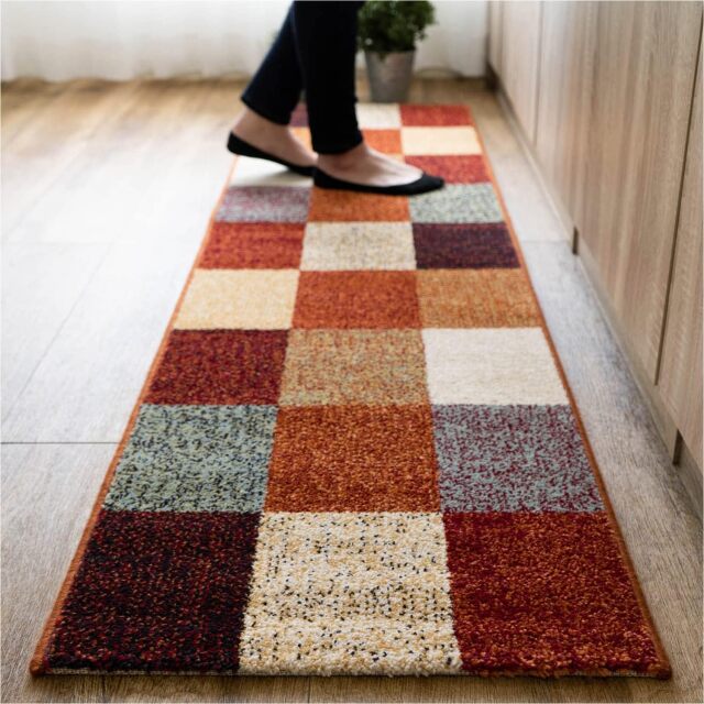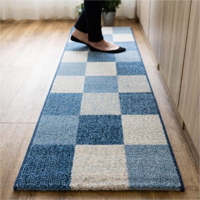 北欧モダンを感じるブロックデザインがおしゃれなウィルトン織りキッチンマットです。