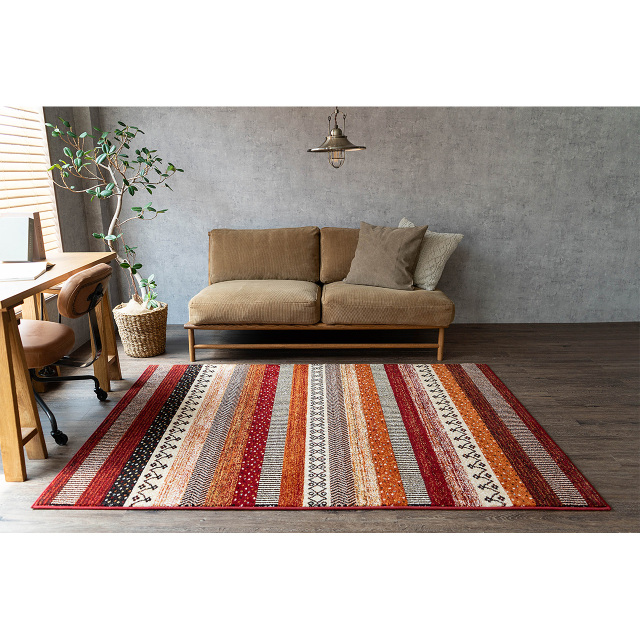 遊び心と温もりを添える マルチカラーラグ! エスニックテイストのストライプ柄 " 優しく温かみのある色使いの、本場トルコ製のウィルトン織りラグ " ![]() " 人気の商品が、リニューアル致しました! " 色合いに明るさ加え、デザインもスタイリッシュな柄に変更し、 毎日の暮らしをさりげなく彩る、軽やかな印象に仕上げました。 ナチュラルにもモダンにも合わせやすく、 生まれ変わったジオメトリーラインで、 あなたの生活空間を一層魅力的に彩ります。 カラー: レッド![]() " 足元から伝わる、優しい触れ心地 " 素材には 『 ポリプロピレン 』 を使用 (ポリプロピレン 100%) パイル糸を強くねじったツイストパイルを使用し 質量を高めるだけでなく、遊び毛を抑え より深みのある色合いを演出することができます。 その糸をハードツイスト加工(強念)することで、 しっかりとした踏み応えの感じられる心地よさに仕上がっています。 ヨーロッパの伝統ある"ウィルトン織り"と言われるだけあり、 長年の知識と経験を活かし、高級感あるラグ・カーペットに仕上がっています。 ![]() " 一年を通して、お使いいただけます " ラグの全厚は、約14〜15mmです。 さらに冬場には床暖房にもお使いいただけ、 暖かい季節には肌触りもよく、とても心地良いラグです! 季節を問わず、1年を通してお使いいただけます。 ![]() ![]() " 日常使いに適した ウィルトン織り " ウィルトン織りカーペットの基準の1つであるノット数は、 160,000ノットの商品です。 16万ノットは、カーペット業界の基準では、日常使いに適した 普及品となります。ただ、その中でも踏み心地はしっかりとし、 ご満足いただけるカーペットとなっております。 ウィルトン織りの特徴である繊維の表面に熱処理加工を施す ヒートセット加工により、形態や寸法安定性を保つようにする効果もあり、 表面が柔らかく、滑らかで、遊び毛が出にくい 仕上がりになっているのも特徴です。 その為、日常使いでとても扱いやすいカーペットとなっております。 ![]() ![]() カラー: ヘザーグレー![]() シックで落ち着いた色使いが、高級感を引き立たせる"ヘザーグレー" 濃いウッド調のインテリアなどに、ぴったりのカーペットです。 ![]() ![]() ![]() お手入れ方法![]() 必ずお読みください![]() ![]() 選べる2色展開インテリアに合わせてお選びください。 ![]() 歴史ある『ウィルトン織り・ラグ』の良さを 感じていただけましたでしょうか? 本場トルコで作られた"彩色豊かで柔らかな肌触り"と、 "さまざまなパターンを組み合わせた"デザインラグを是非お楽しみ下さい。