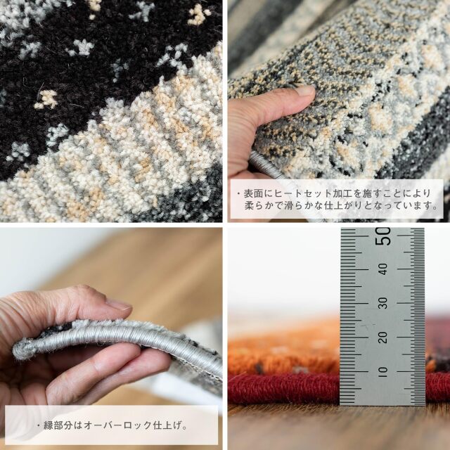 | 組成 | ポリプロピレン100% / <毛足> ハードツイストパイル・ヒートセット加工 / ウィルトン織り・1㎡辺り160,000ノット |