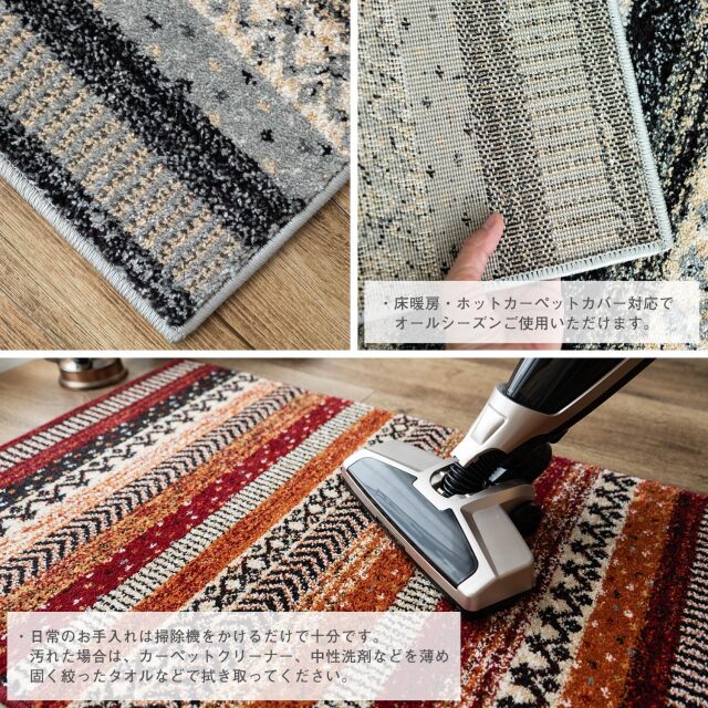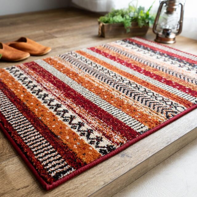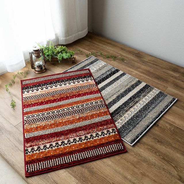 遊び心と温もりを添える マルチカラーマット! エスニックテイストのストライプ柄 " 優しく温かみのある色使いの、本場トルコ製のウィルトン織りマット " ![]() " 人気の商品が、リニューアル致しました! " 色合いに明るさ加え、デザインもスタイリッシュな柄に変更し、 毎日の暮らしをさりげなく彩る、軽やかな印象に仕上げました。 ナチュラルにもモダンにも合わせやすく、 生まれ変わったジオメトリーラインで、 あなたの生活空間を一層魅力的に彩ります。 カラー: レッド![]() " 日常使いに適した ウィルトン織り " ウィルトン織りカーペットの基準の1つであるノット数は、 160,000ノットの商品です。 16万ノットは、カーペット業界の基準では、日常使いに適した 普及品となります。ただ、その中でも踏み心地はしっかりとし、 ご満足いただける玄関マットとなっております。 ウィルトン織りの特徴である繊維の表面に熱処理加工を施す ヒートセット加工により、形態や寸法安定性を保つようにする効果もあり、 表面が柔らかく、滑らかで、遊び毛が出にくい 仕上がりになっているのも特徴です。 その為、日常使いでとても扱いやすいカーペットとなっております。 ![]() " 心地良さにもこだわりました " 素材には 『 ポリプロピレン 』 を使用 (ポリプロピレン 100%) パイル糸を強くねじったツイストパイルを使用し 質量を高めるだけでなく、遊び毛を抑え より深みのある色合いを演出することができます。 その糸をハードツイスト加工(強念)することで、 しっかりとした踏み応えの感じられる心地よさに仕上がっています。 ヨーロッパの伝統ある"ウィルトン織り"と言われるだけあり、 長年の知識と経験を活かし、高級感あるマットに仕上がっています。 ![]() ![]() " 一年を通して、お使いいただけます " マットの全厚は、約14〜15mmです。 さらに冬場には床暖房にもお使いいただけ、 玄関以外のベッドサイドなどの アクセントマットとしてもおすすめ! 季節を問わず、1年を通してお使いいただけます。 ![]() ![]() カラー: ヘザーグレー![]() シックで落ち着いた色使いが、高級感を引き立たせる"ヘザーグレー" 濃いウッド調の玄関などに、ぴったりのマットです。 ![]() ![]() ![]() お手入れ方法![]() 必ずお読みください![]() 選べる2色展開インテリアに合わせてお選びください。 ![]() 歴史ある『ウィルトン織り・マット』の良さを 感じていただけましたでしょうか? 本場トルコで作られた"彩色豊かで柔らかな肌触り"と、 "さまざまなパターンを組み合わせた"デザインマットを是非お楽しみ下さい。