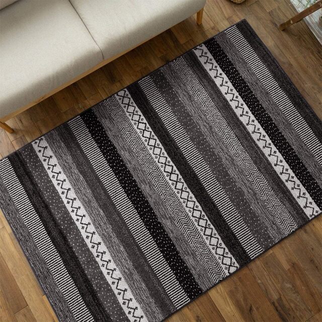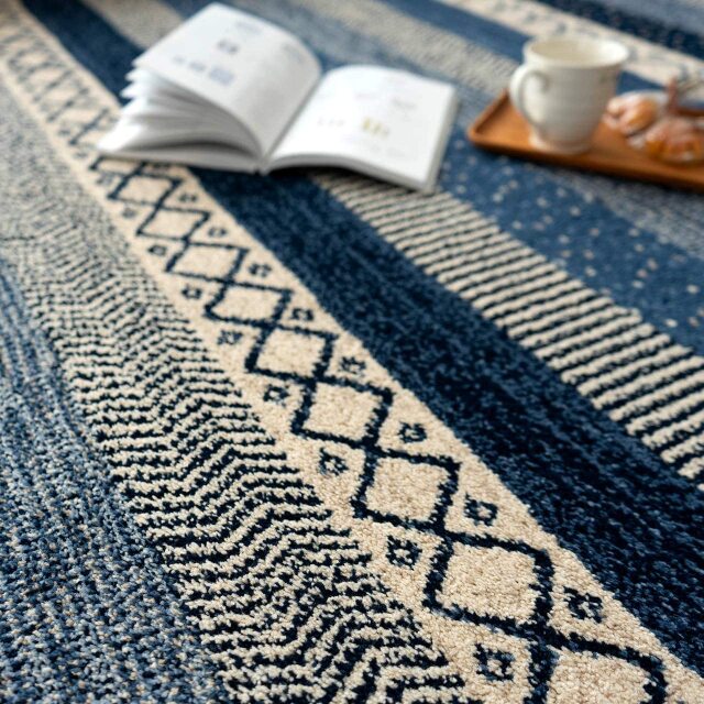 北欧テイストの雰囲気がおしゃれなボーダーデザインのウィルトン織りラグです。