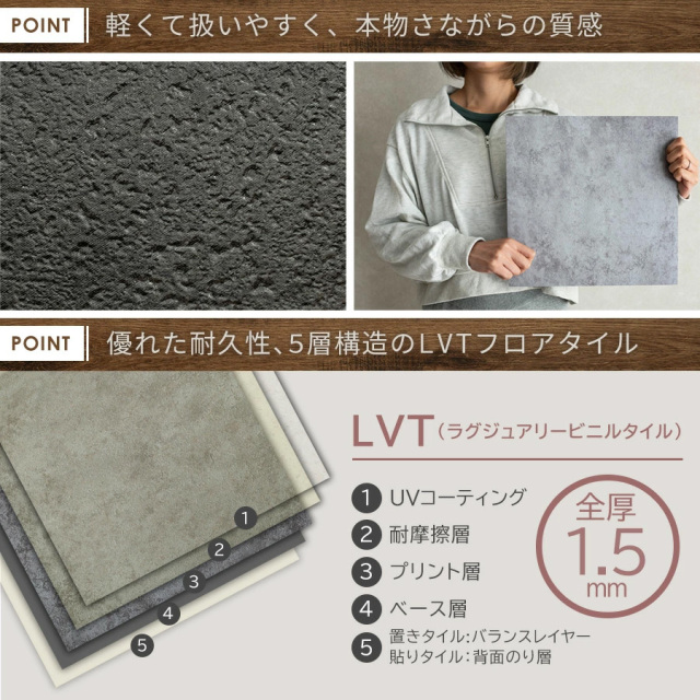 | 組成 | PVC(LVT・ラグジュアリービニルタイル) |