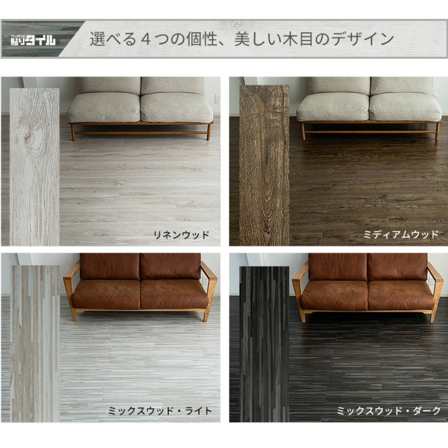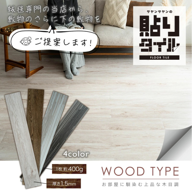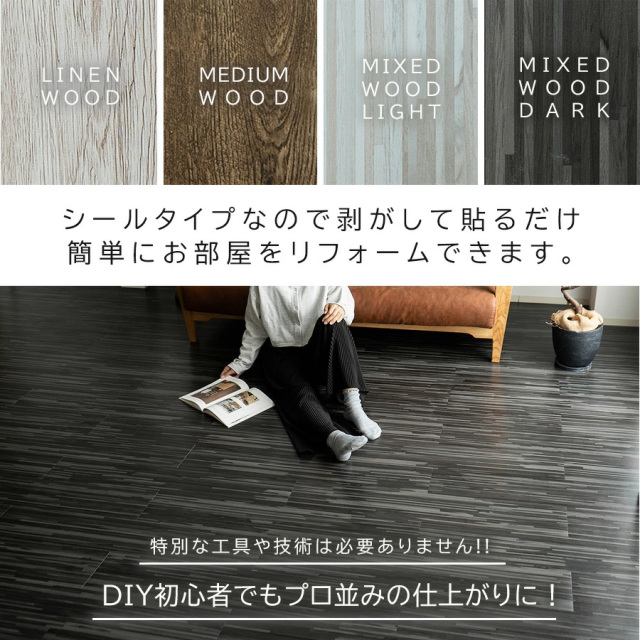 貼るだけ!簡単フロアタイル お手軽DIY&リフォーム サヤンサヤンの貼りタイル"ウッドデザイン"で 自分好みの理想のフロアを是非お楽しみ下さい! |