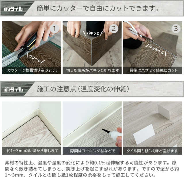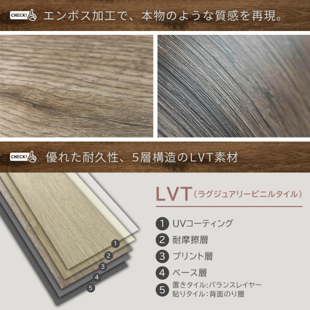 | 組成 | PVC(LVT・ラグジュアリービニルタイル) |