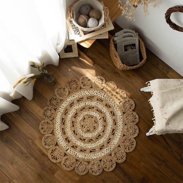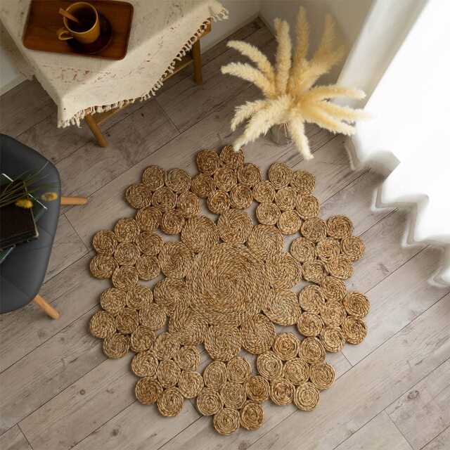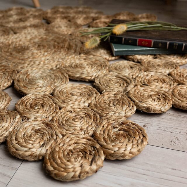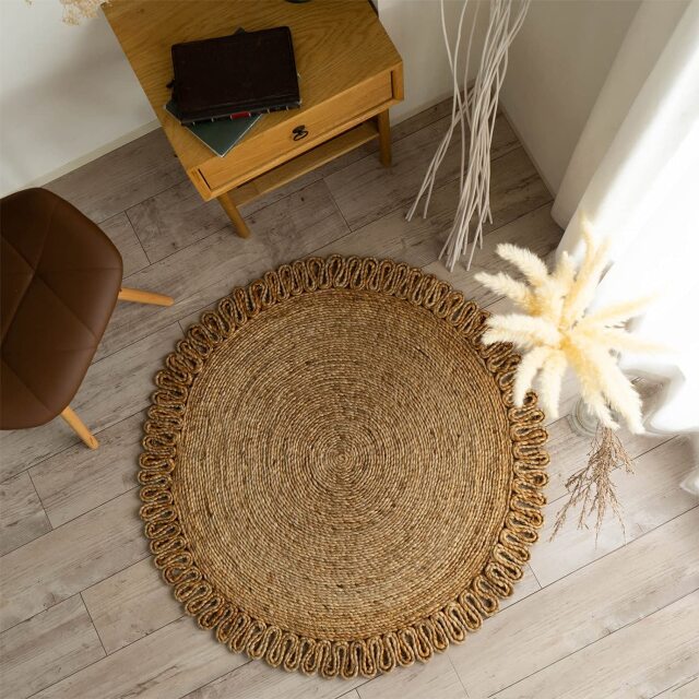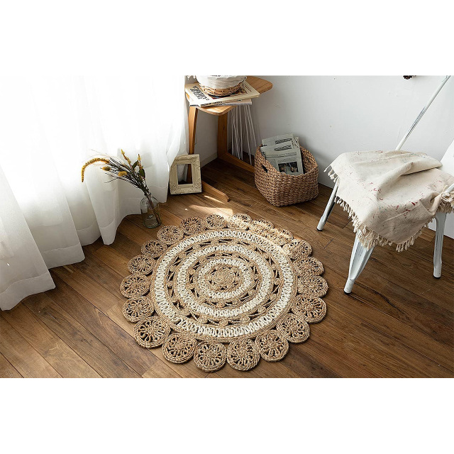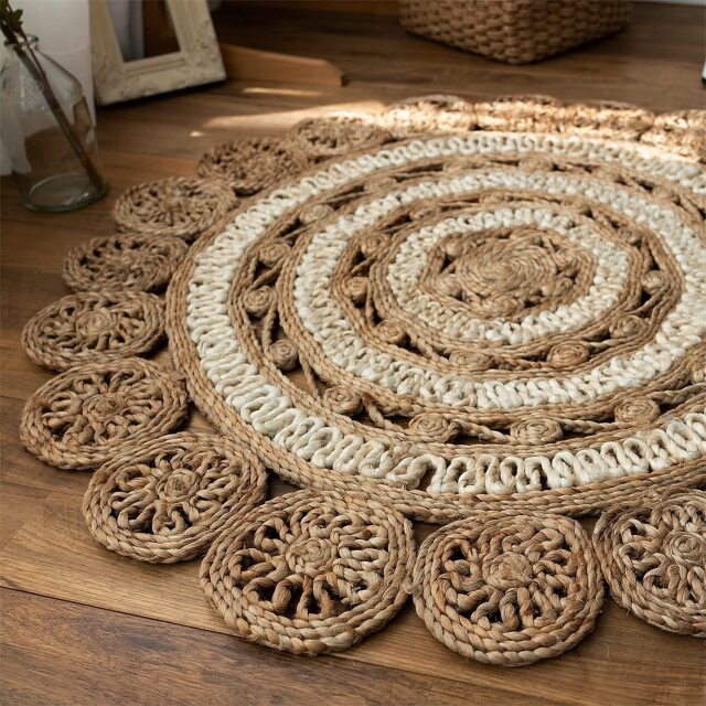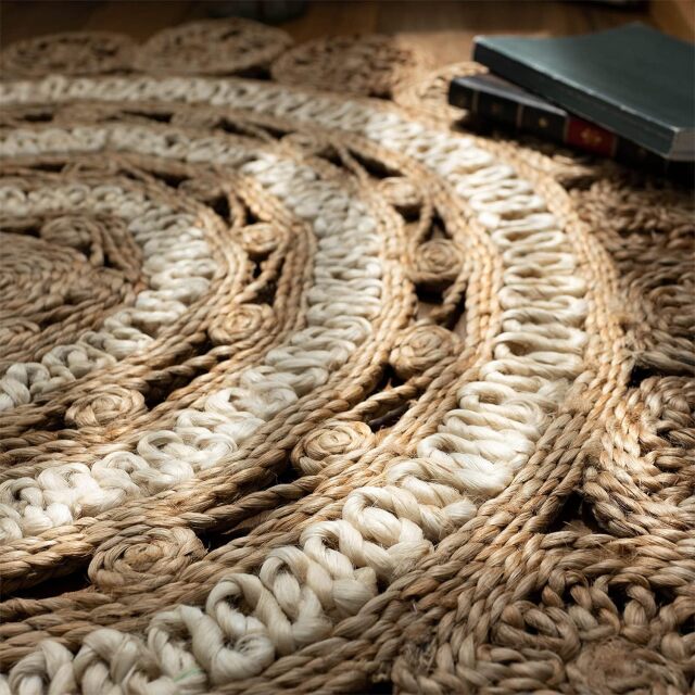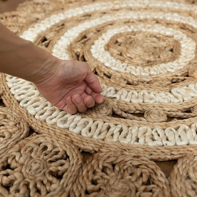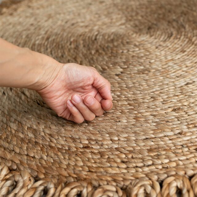 ナチュラルな雰囲気がおしゃれ!天然素材のジュート(麻)を、専門職人さんによりハンドメイドで丁寧に作られたラグ。