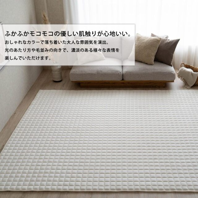 ふかふかモコモコの優しい肌触り、コーヒーカラーがおしゃれな厚手キルトラグ。