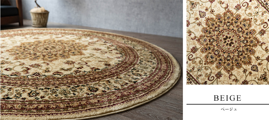 ペルシャ絨毯で代表的なクラシック・メダリオン柄の円形のラグマットです。