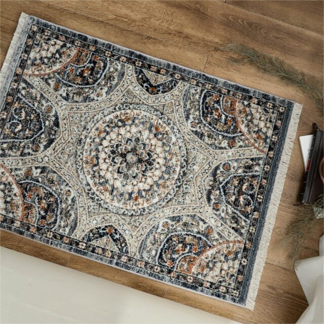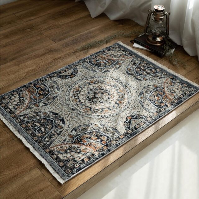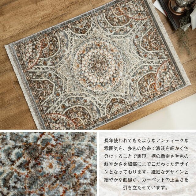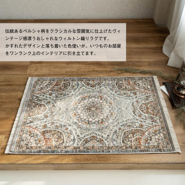 高密度で表現されヴィンテージデザインとさりげないフリンジがこだわり感じるウィルトン織りマット。