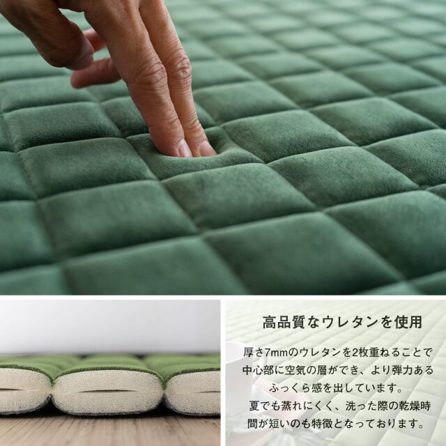 | 組成 | <表面>ポリエステル95% / ポリウレタン5% <中材>2層ウレタンフォーム <裏面>ポリエステル100%(不織布) |