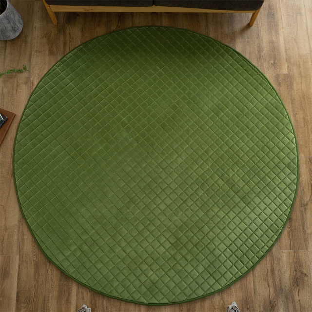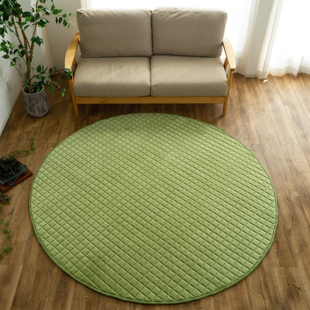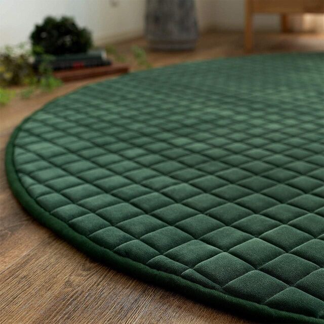 おしゃれで、かわいい円形ラグ! 当店オリジナル " LUONTO " ふかふかモコモコの、優しい触れ心地 卸通販価格! 安心の税込プライス さらに全国送料無料(一部地域を除く)でお届け。 ![]() LUONTO <ルオント> LUONTO (ルオント) とは、フィンランド語で、 "自然の恵み"という意味です。 忙しい日々の生活の中で "ふかふかモコモコラグ" でくつろぎながら、 新緑ある自然の中でいるような、ゆったりとした時間のひとときを お楽しみいただけるように。 というコンセプトで、生地や触れ心地、パッケージにまでこだわりました。 自然との調和を感じさせるナチュラルカラーシリーズの LUONTO (ルオント) をお楽しみください! カラー: オリーブ![]() 均等に並べられたブロック・デザインが "凹凸あるふっくら感" をうまく 演出しています。立体感のある "ブロックデザイン" は、光のあたり方や 毛並みの向きで濃淡のある様々な表情を見せてくれますよ! ![]() " 心地良さに、徹底的にこだわりました " 肌が触れる表面素材にはポリエステルとポリウレタンを使用。 (ポリエステル 95%/ポリウレタン 5%) 中材には、7mmの厚さのウレタンを2枚重ねて使用しています。 高品質なウレタンを2枚重ねることで、1枚のウレタンでは出せない "ふっくら感・モコモコ感" を作っています。 また、機能性にも優れており、通常のウレタンと違い、 高通気性のウレタンを使用しております。 高通気性のウレタンを使用する事で、通気性・透水性が良く、 夏でも蒸れにくく、洗った際の乾燥時間が短いのも 特徴となっております。 ![]() 表面の生地は、厳選された細めの繊維で織り上げ、 ぬいぐるみのような優しい触れ心地に仕上げました。 さらに伸縮性のある生地を使用することで、 ウレタンの膨らみ感が、より伝わるように作られています。 他にはない "モコモコの弾力感" に一度触れてみてください! ![]() ![]() ラグの厚さは、約18mm (全厚)です。厚みはありますが、 中材がウレタン構造のため、重さも軽く仕上がっています。 女性の方でも、お部屋の移動などもしやすくなっております。 弾力感ある、ふかふかのクッション性が、長時間のキッチンでの 立ち仕事を足元からサポートしてくれます。 さらに、通常のキッチンマットよりも幅の広い50cm幅ですので、 ゆったりと使え、床の汚れなども幅広く防げます。 お洗濯もできますので、小さなお子様のいらっしゃる ご家庭でも安心してお使いいただけます。 ![]() お部屋をお手軽に模様替え![]() カラー:ガーデン![]() 深緑の美しさに魅了されそうな色合いが特徴の"ガーデン" 3色のカラーバリエーションの中では、一番濃い色のラグです。 見る角度や毛並みの向きで、より一層深みのある"グリーン"に見えたり、 深緑に陽の光があたったような薄い"グリーン"に見えたりするのも特徴です。 ![]() ![]() ![]() お手入れ方法![]() カラー:リーフ