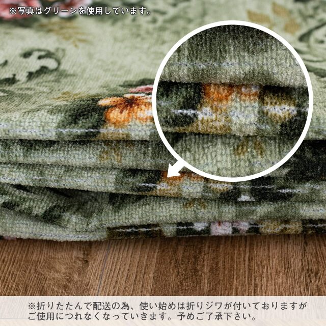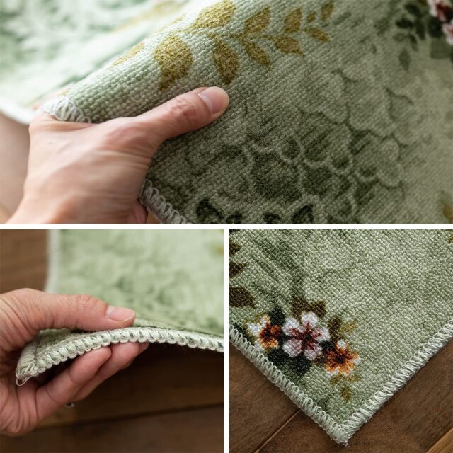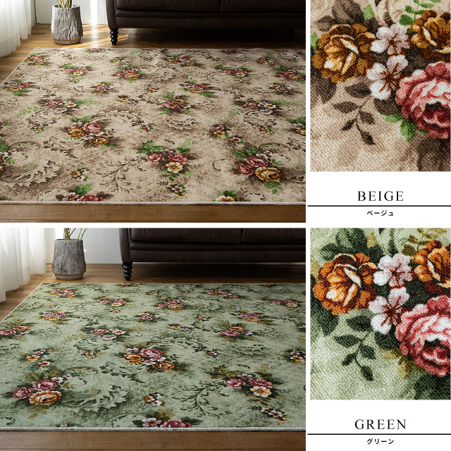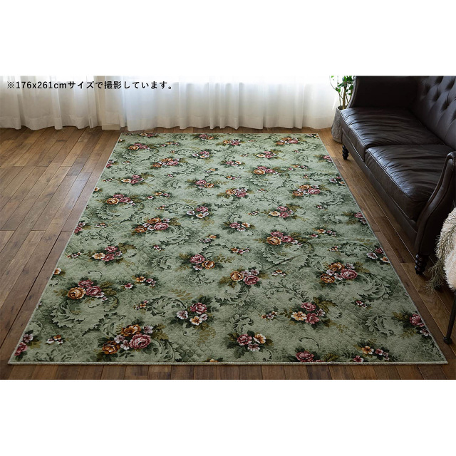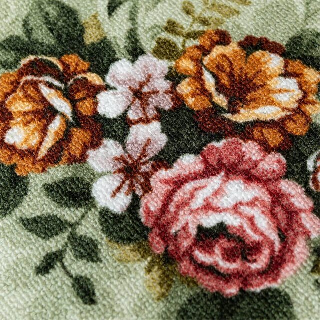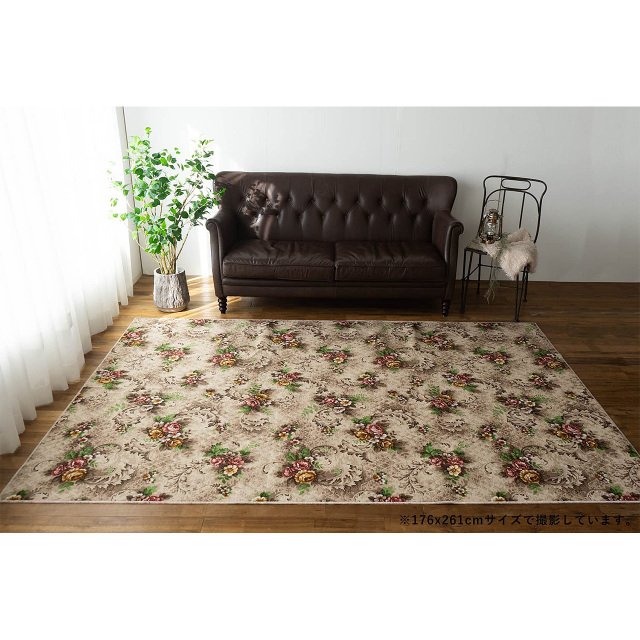 清潔で安心の撥水・防汚加工を施した、優雅な雰囲気が魅力の日常使いにおすすめフラワーデザインラグ。