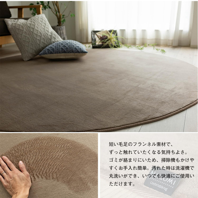 | 備考 | 丸洗い可能(洗濯ネットを使用し、手洗いコースをお選び下さい。洗濯機の取り扱い説明書をご確認の上、適した洗濯コースをお選びください。)洗濯後はすぐに形を整え日陰で干してください。乾燥機は使用できません。大きめサイズの洗濯に関しては、コインランドリー等をご使用ください。(190×190cm以上推奨)ご自宅の洗濯機容量が異なるため、お客様にてご確認ください。 / ※こちらの画像は円形140cmを使用しております。 / 床暖房の上敷き、ホットカーペットカバー対応 。 |