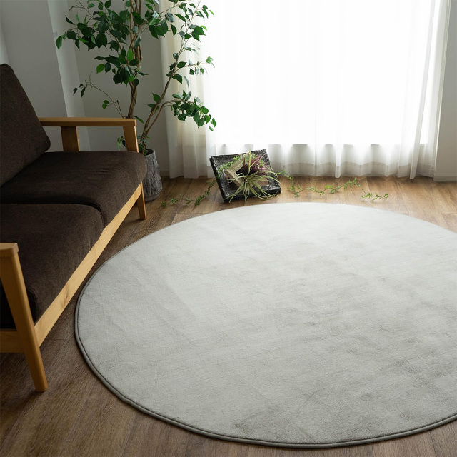 ラウンド型の円形ラグは、リビングに敷くだけでなく、