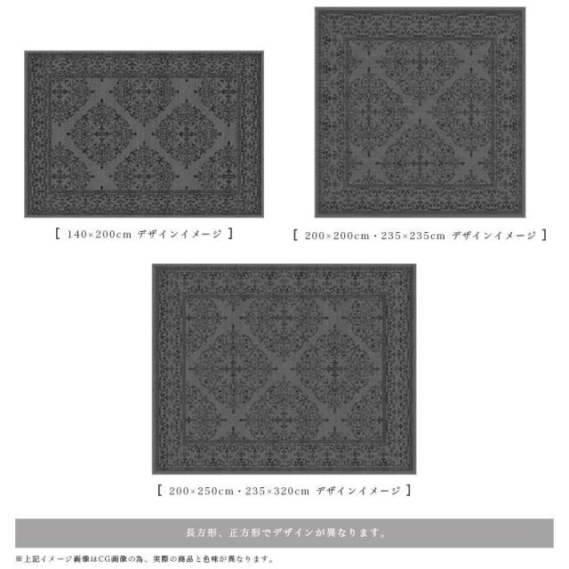 ヴィンテージな雰囲気を取り入れた " ORNAMENT RUG " 気品漂うおしゃれなモノトーンテイスト ![]() " 落ち着いたクラシカルな雰囲気が魅力 " クラシック調のシックなデザインが特徴のオーナメント柄。 そこに、落ち着いた色使いの "グレー" や "ブラック" を 使用することで、高級感あるラグに仕上がっています。 さらに長年使ってきたような、ヴィンテージ感ある風合いの 表現も、多色の色糸を使い表現しています。 是非、一度手にとってご覧いただきたいラグ・カーペットです! カラー: グレー![]() インテリアに合わせやすい"グレー" 見る角度や光のあたり方で、カーペット全体が単色のグレーだけでなく、 薄く青みがかった色合いに見えるのも特徴です。 ![]() " 足元から伝わる、優しい触れ心地 " 素材には『ポリプロピレン』を使用。 (ポリプロピレン 100%) ポリプロピレンの特徴は、耐摩擦性にも優れており、 静電気が帯にくく毛玉もできにくいため、長くお使いいただけます。 高密度なウィルトン織りのように鮮やかさや、奥行き感のある 豪華さはありませんが、シックなデザインを取り入れたり、 取り扱いのしやすさを考えた、日常使いしやすい1枚です。 ![]() ![]() " 一年を通して、お使いいただけます " ラグの厚さは、約11〜12mm (全厚)です。 パイル長が短いため、パイルの隙間にゴミも 入りにくくお手入れもしやすい1枚です! さらに床暖房やホットカーペットカバーにも対応し、 季節を問わず、1年を通してお使いいただけます。 ![]() ![]() カラー: ブラック![]() シックな雰囲気が大人カッコいい"ブラック" 複数の色糸をうまく使い分け、装飾模様の部分には、 濃い色糸や薄い色糸のグレーを混ぜたりと オールド感を演出したカーペットです。 ![]() ![]() ![]() お手入れ方法![]() カラー: アイボリー![]() 統一感ある優しい色合いから高級感伝わる"アイボリー" クラシカルデザインをアイボリーと組み合わせることで 主張しすぎず、上質な空間に仕上がります。 ![]() 18世紀中期より、受け継がれた ヨーロッパ伝統のウィルトン織 ![]() ![]() サイズ毎のデザイン![]() 選べる3色展開インテリアに合わせてお選びください ![]() " 高級感溢れるクラシカルデザイン " 上品な風合いと重厚な質感を感じる1枚 "ヴィンテージな雰囲気"も取り入れた "オーナメント・デザイン"のウィルトン織りラグを 是非この機会にお楽しみ下さい。