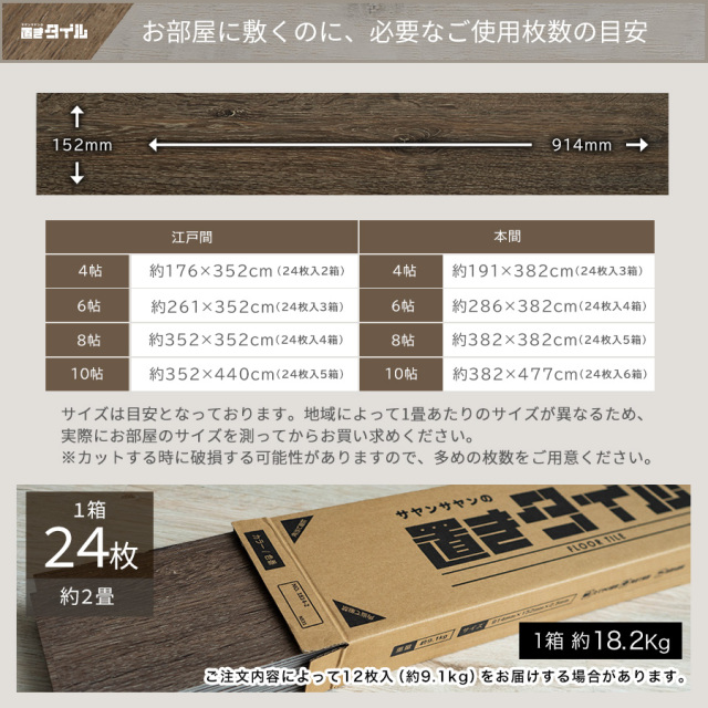 | サイズ | 1枚あたりのサイズ914×152mm 1箱24枚 |