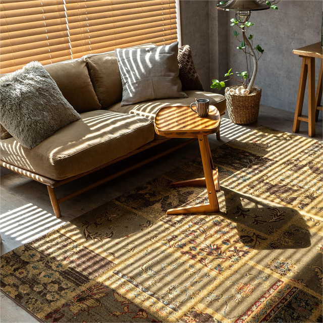 パッチワーク柄をアンティーク風に表現した、ウィルトン織りラグマットです。