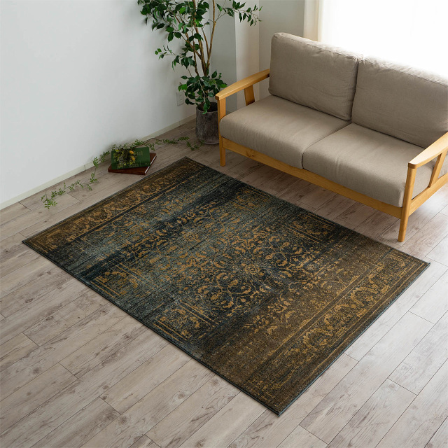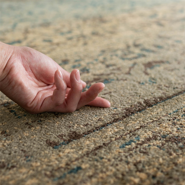 ヴィンテージ感ある雰囲気と深みのある色合いが魅力。肌触りが気持ちいい日常使いにおすすめのウィルトン織りラグです。