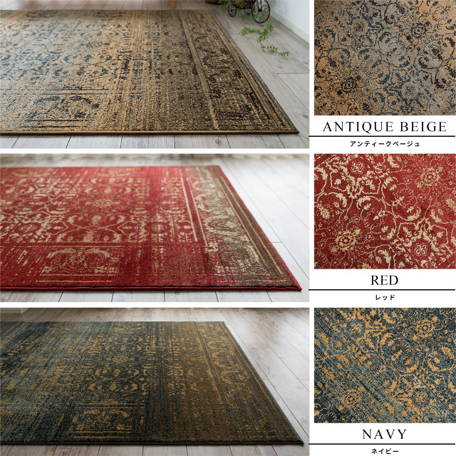 ヴィンテージ感ある風合い!トルコ製ウィルトン織り アンティーク調のオールド・スタイル "長年使われてきたヴィンテージ感ある雰囲気と、深みのある色合いが魅力" 卸通販価格! 安心の「税込プライス」 高級感あるウィルトン織りをお求めやすい価格でご用意いたしました。 さらに全国送料無料(一部地域を除く)でお届け。 ![]() 近年海外で人気の "アンティーク調 デザイン" ペルシャ絨毯や、トルコ絨毯など何十年も前に 織られた物で、そのアンティーク感や、長年使われてきた様な 独特な風合いを好む愛好家がたくさんいます。 そんなアンティーク感を多色の色糸だけで表現した"Old Style デザイン"の絨毯です! 5色以上の色糸を使い織り込まれていますので、 高級感ある仕上がりとなっています。 是非、一度手にとってご覧いただきたいカーペットです! カラー: レッド![]() ウィルトン織りカーペットの基準の1つであるノット数は、128,000ノットの商品です。 12.8万ノットは、カーペット業界の基準では、日常使いに適した中級品となります。ただ、その中でも踏み心地はしっかりとし、ご満足いただけるカーペットとなっております。 ウィルトン織りの特徴である繊維の表面に熱処理加工を施すヒートセット加工により、形態や寸法安定性を保つようにする効果もあり、表面が柔らかく、滑らかで、遊び毛が出にくい 仕上がりになっているのも特徴です。 その為、日常使いでとても扱いやすいカーペットとなっております。 ![]() 素材には厳選された『ポリプロピレン』を100%使用。 ウィルトン織りの特徴の触れ心地を左右するヒートセット加工により、肌触りが気持ちよく仕上がっているのは、もちろんですが、デザインにも徹底的にこだわったカーペットです。 18世紀頃より、ヨーロッパで織られてきた"ウィルトン織り"は、長年の知識や経験を活かし、ヴィンテージ感を表現する為、多色の色糸を組み合わせ、色褪せた感じの表現などもうまく表現し織られています。 中級品の中でもワンランク上のカーペットとして仕上がっています。 毎日使うものだからこそ、"触れ心地"、"デザイン"共にこだわり、長く安心してご利用いただけるラグです。 ![]() ![]() ラグの厚さは、約11〜12mm (全厚)です。扱いやすい厚さと重さが、お部屋の移動などもしやすいです。 さらに冬場には床暖房やホットカーペットカバーにも対応し、暖かい季節には肌触りもよく、とても心地良いカーペットです! 表情豊かなデザインカラー名はレッドですが、色の濃淡で朱色のようにも見えます。 ![]() ![]() お部屋をお手軽に模様替え![]() カラー: ネイビー![]() カラー名は、ネイビーですが、写真にあるように緑がかったネイビーの色合いになっています。 そこに、ゴールドに近いオーカー色を組み合わせることで、より高級感あるデザインになっております。 ![]() ネイビーの部分にもゴールドを組み合わせることで、全体のデザインを引き立てます ![]() 表情豊かなデザインカラー名はネイビーですが、実際の色目は、グリーンに近いネイビーです。 ![]() ![]() お手入れ方法![]() カラー: アンティークベージュ![]() ベージュを基調に、アクセントとしてネイビーを加えることで、よりクラシカルで上質な雰囲気を演出しています。 ![]() ![]() 表情豊かなデザイン色の濃炎がわかりやすく、1枚で様々な表情をお楽しみいただけます。 ![]() ![]() 選べる3色展開![]() アンティークな雰囲気が高級感あるラグ・カーペット 独特な風合いや色合いを見事に表現した"オールドスタイル・デザイン" いつものお部屋をこだわりの空間にしてみませんか? ヴィンテージ感あるウィルトン織りラグを是非お楽しみください。 ※当店は通常、おもに同業他社に卸販売を行っております。 在庫は豊富にご用意しておりますが、突然の品切れの場合もございますので その際はメールにてご連絡させていただきます。 ★より良いラグカーペットをお求めやすい価格で!★ ラグマット通販店は様々な生活シーンに合わせた (クラッシック シンプル モダン ナチュラル モロッコ ボタニカル ボヘミアン boho 北欧 風 西海岸 一人暮らし ヴィンテージ 韓国 インテリア 男前、無地 アジアン など)絨毯 じゅうたん、カーペット を卸通販価格にて販売しております。 ウィルトン織り、ゴブラン織りから手織りまでご用意! 洗える ラグ 円形 長方形 正方形から季節にあわせた 夏 サマーラグ ホットカーペット カバーも! 玄関マット 室内 リビング、ダイニング、和室から子供部屋 屋内 用にもあわせた、ラグ 2畳 3畳 4.5畳 6畳 8畳 サイズと多数取り揃えています!訳あり、掘り出し物 じゅうたん も必見です。全国送料無料(一部地域を除く)