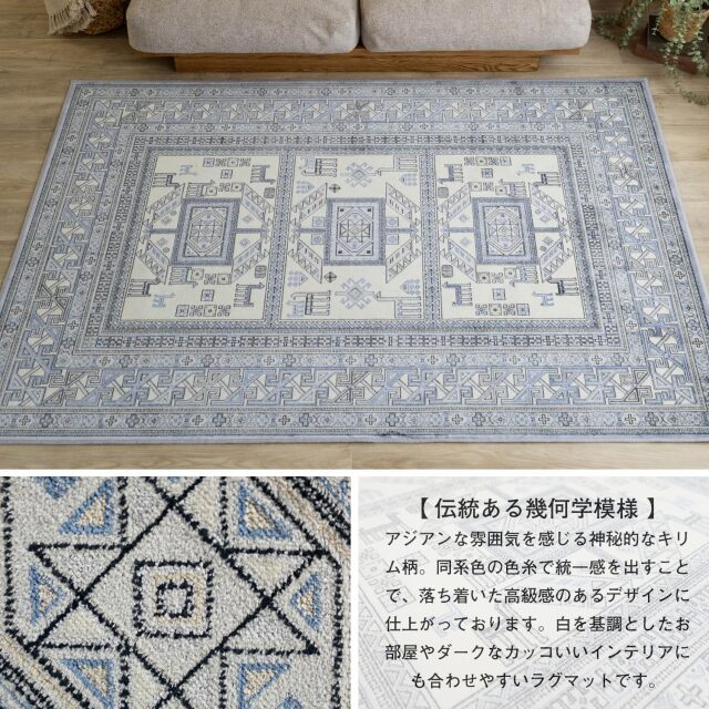 高級感があり美しい、幾何学模様がオリエンタルな雰囲気のラグマットです。