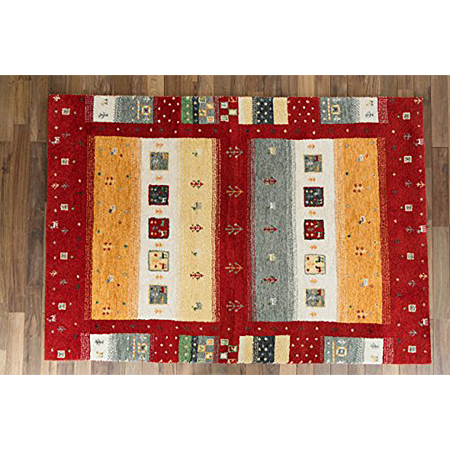 ウールマーク付き、手織りの風合いが癒されるギャッベのラグマットです。