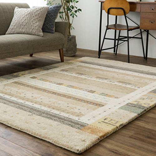 ウールマーク付き、手織りの風合いが癒されるギャッベのラグマットです。
