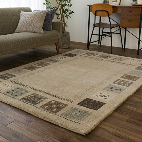 ウールマーク付き、手織りの風合いが癒されるギャッベのラグマットです。