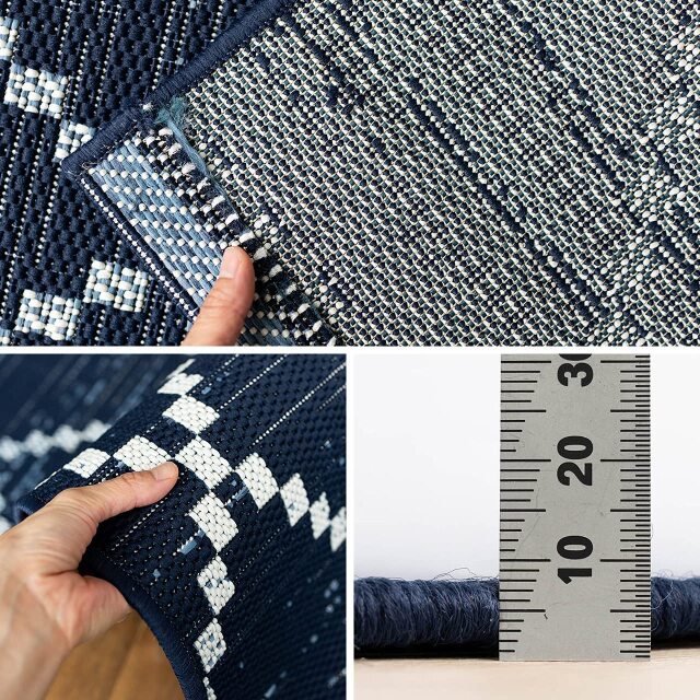 厚みは7ミリ、厳選された素材のポリプロピレン繊維を使用して織られています。程よい厚みがお部屋の移動などもしやすく日常使いしやすいラグです。