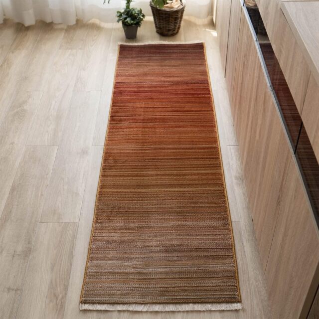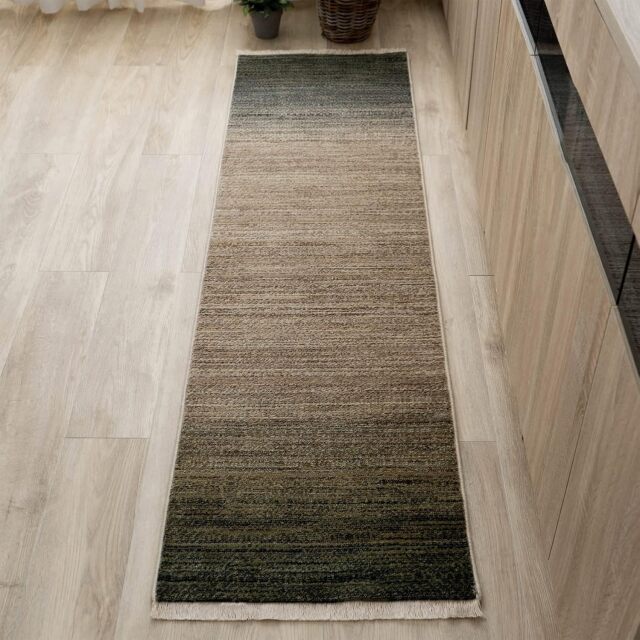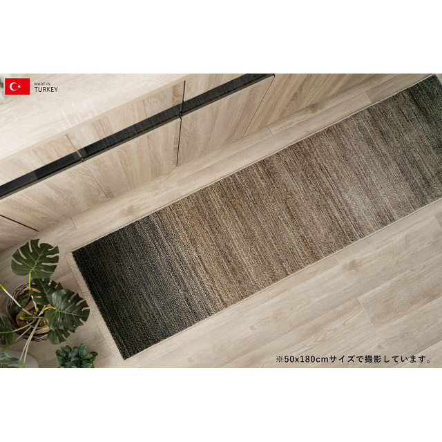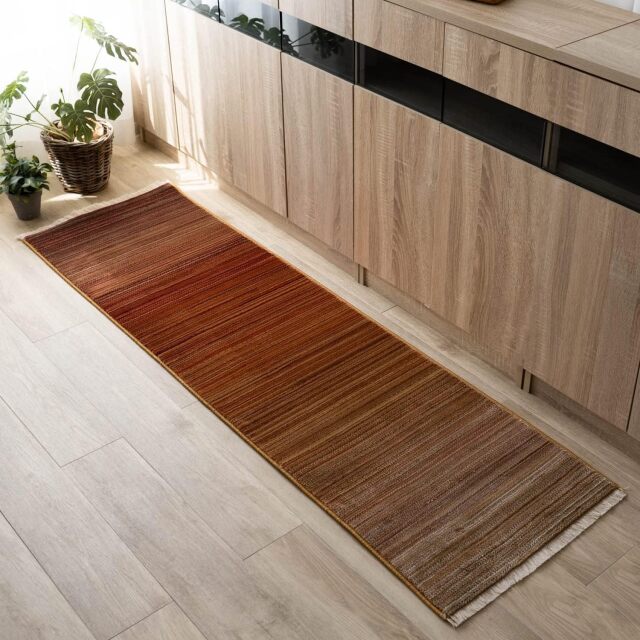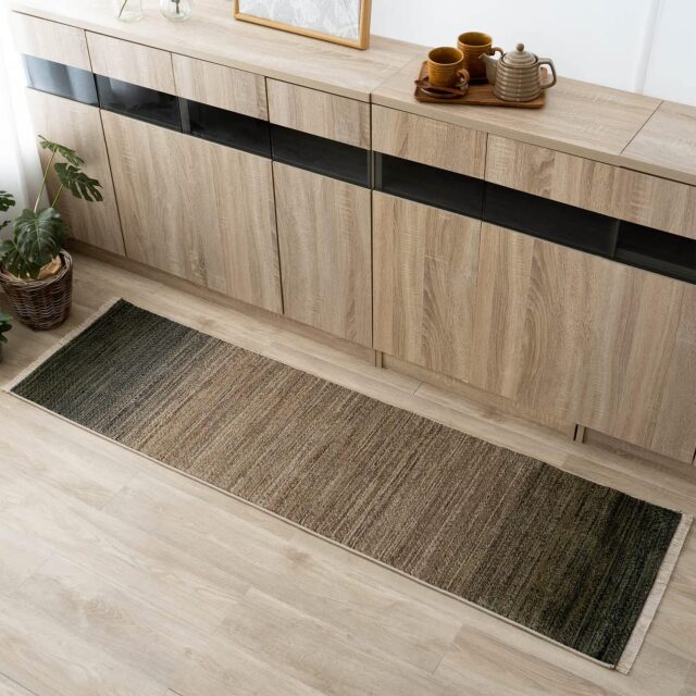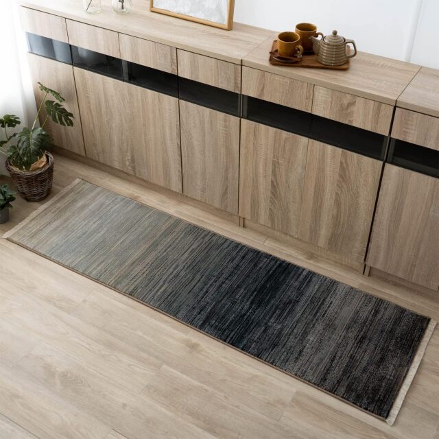 美しいトーンのグラデーションが、さりげないフリンジと高密度30万ノットが織り成すキッチンマットです。
